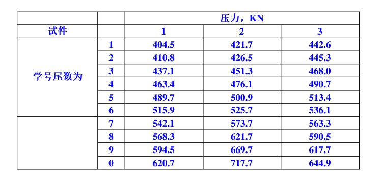 按學(xué)號(hào)尾數(shù)選取壓力值,填寫試驗(yàn)報(bào)告。